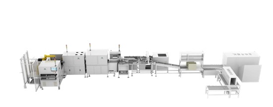 鈑金柔性加工產(chǎn)線將激光切割設(shè)備、上下料設(shè)備、智能分揀設(shè)備、鈑金料庫、RGV、智能行吊等結(jié)合成一條產(chǎn)線,從金屬材料的進料、傳送、堆放和卸料全部實現(xiàn)自動化