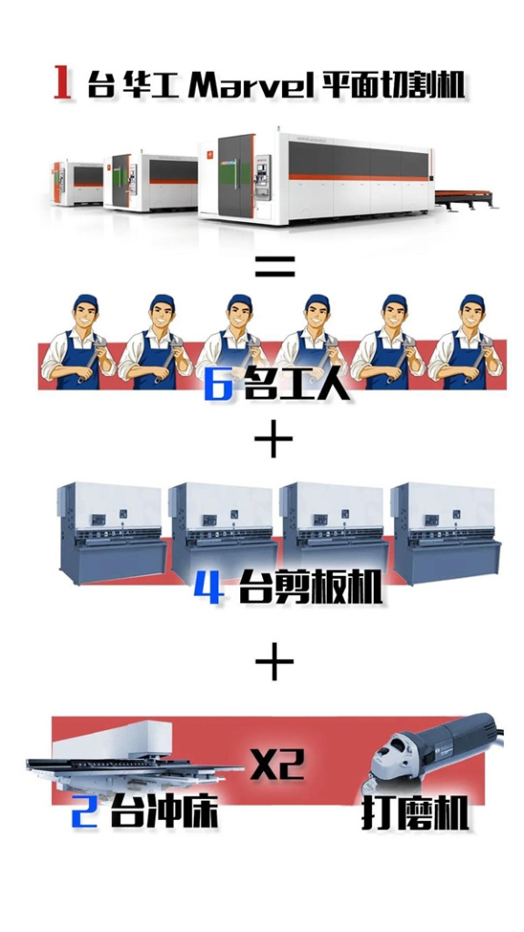 陳總寄予厚望的新設(shè)備,就是2019年從華工購(gòu)入的MARVEL12000W激光切割機(jī),“1臺(tái)MARVEL可以省6個(gè)工人,因?yàn)樗?臺(tái)等于4臺(tái)剪板機(jī)加2臺(tái)沖床,又不用打磨,省時(shí)省力省材料,效率沒得說!”