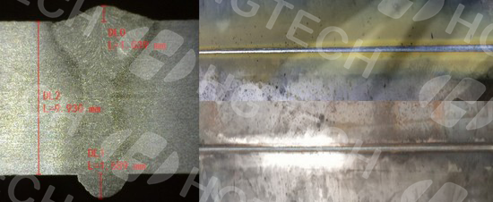 我司承接了某船廠的船板激光電弧復(fù)合焊工藝開發(fā)項目,針對船用5-10mm中厚板,通過大量工藝試驗與檢測分析,對各厚度船板進(jìn)行激光復(fù)合焊接工藝研究,穩(wěn)定實現(xiàn)5-10mm船板拼焊單面焊雙面成形和T形焊縫雙面焊,工件焊前均無需開坡口,焊縫成形飽滿、美觀、均勻一致,無不良缺欠,焊接強(qiáng)度高,滿足船級社焊接質(zhì)量標(biāo)準(zhǔn),獲取了船板中厚板激光電弧復(fù)合焊工藝規(guī)范和工藝數(shù)據(jù)庫。