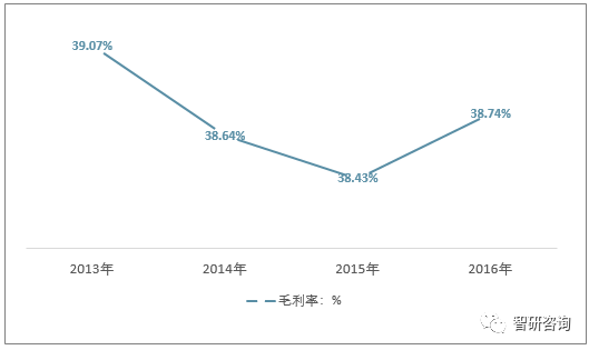 2013-2016年美國(guó)Xylem毛利率走勢(shì)圖(單位:%)