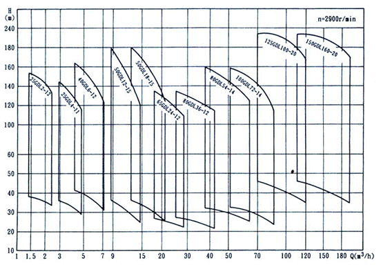 例如:25GDL2-12×5 25:進出口口徑(mm) GDL:立式多級泵 2:額定流量(m3/h) 12:單級揚程(m)